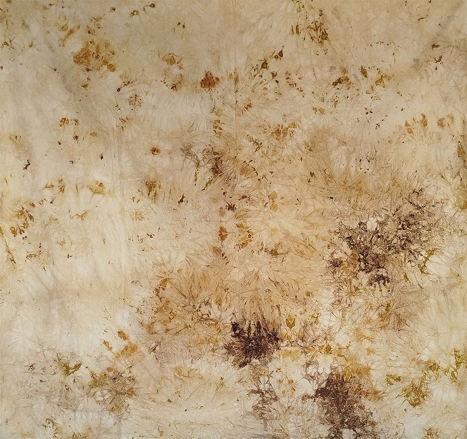 Soporte: Gabardina 6 onzas. Técnica: Mixta. Materiales utilizados: Hojas de Sarandí, Amarillo de Río, Chal chal y Coronillo colorado.